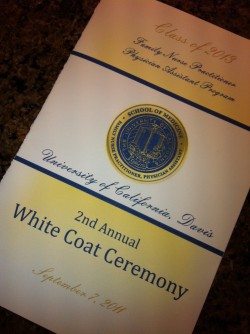 If you’ve been reading Inside PA Training for a while, you’ll remember that I received my white coat ceremony just a year ago. My white coat came as part of the very first white coat ceremony at UC Davis School of Medicine’s FNP/PPA program. The event was organized and funded by the class ahead of… Continue reading White Coat Ceremony 2011