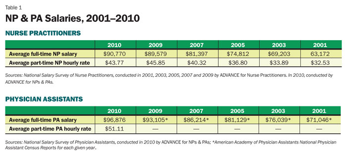 - Overall PA vs NP salary comparisons show differences of 5%-7% more for PAs than NPs.