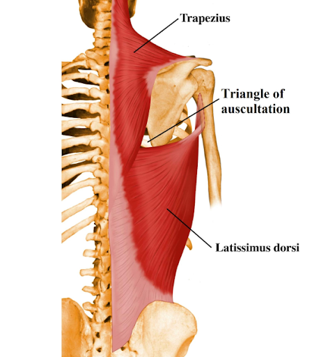 - Assessing lung sounds: allows you to identify the rate, rhythm and quality of breathing, any obstructions of the airways, as well as rubs that indicate inflammation of the pleura. Don’t forget to start above the clavicle, since lung tissue extends that high. Also, when you listen to the back, have the patient lean forward slightly to expose the triangle of auscultation. Remember that for lung sounds (according to the Bates “Bible,”) we listen in six paired areas on the chest, and seven paired areas on the back. I remember this with the mnemonic “6AM - 7PM,” (6 anterior pairs, and 7 posterior pairs). Always listen to left and right sides at the same level before moving down to the next level - this way you get a side-by-side comparison, and any differences will be more apparent.
